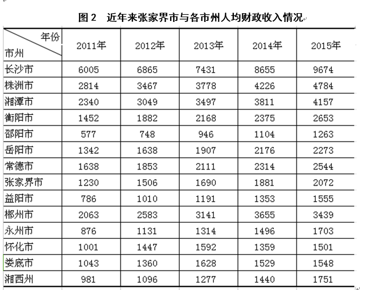 (二)经济结构因素。旅游城市发展工业的必要性还体现在:工业是国民经济重要的财税来源,正所谓“无工不富”。以传统旅游业为主导的产业结构相较于以工业为主导的产业结构,对经济增长贡献和财政贡献要低。与工业基础较好的市州相比,张家界市人均生产总值和人均财政收入明显偏低。近年来,张家界人均生产总值和人均财政收入虽逐年增长,但总量仍不大。湖南省统计年鉴资料显示,近五年张家界市人均生产总值仅为全省最高的长沙市的1/4,在市州在第九位徘徊;人均财政收入仅为最高的长沙市的1/5,在市州第八位徘徊。